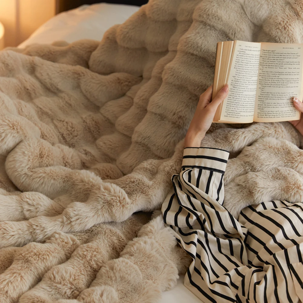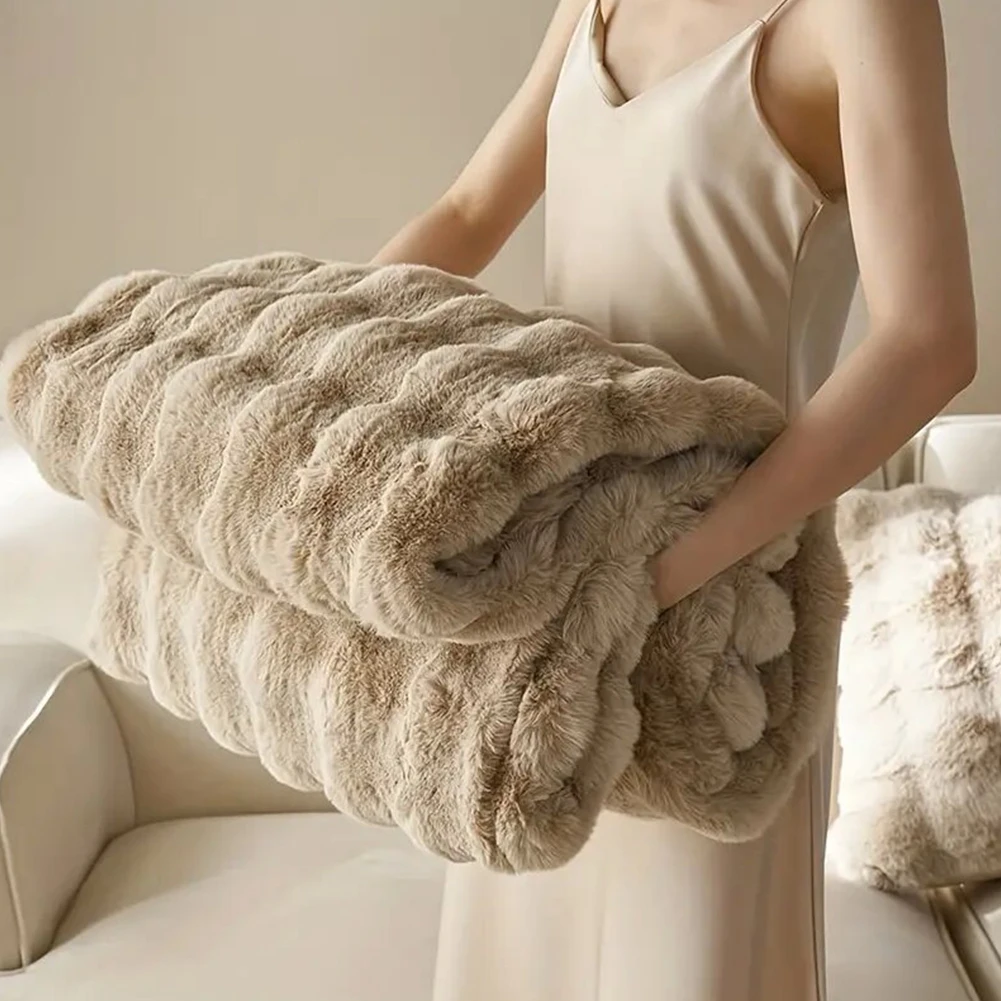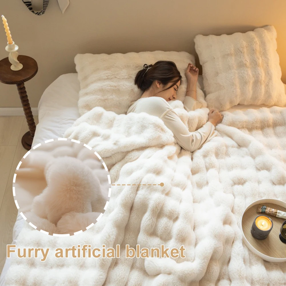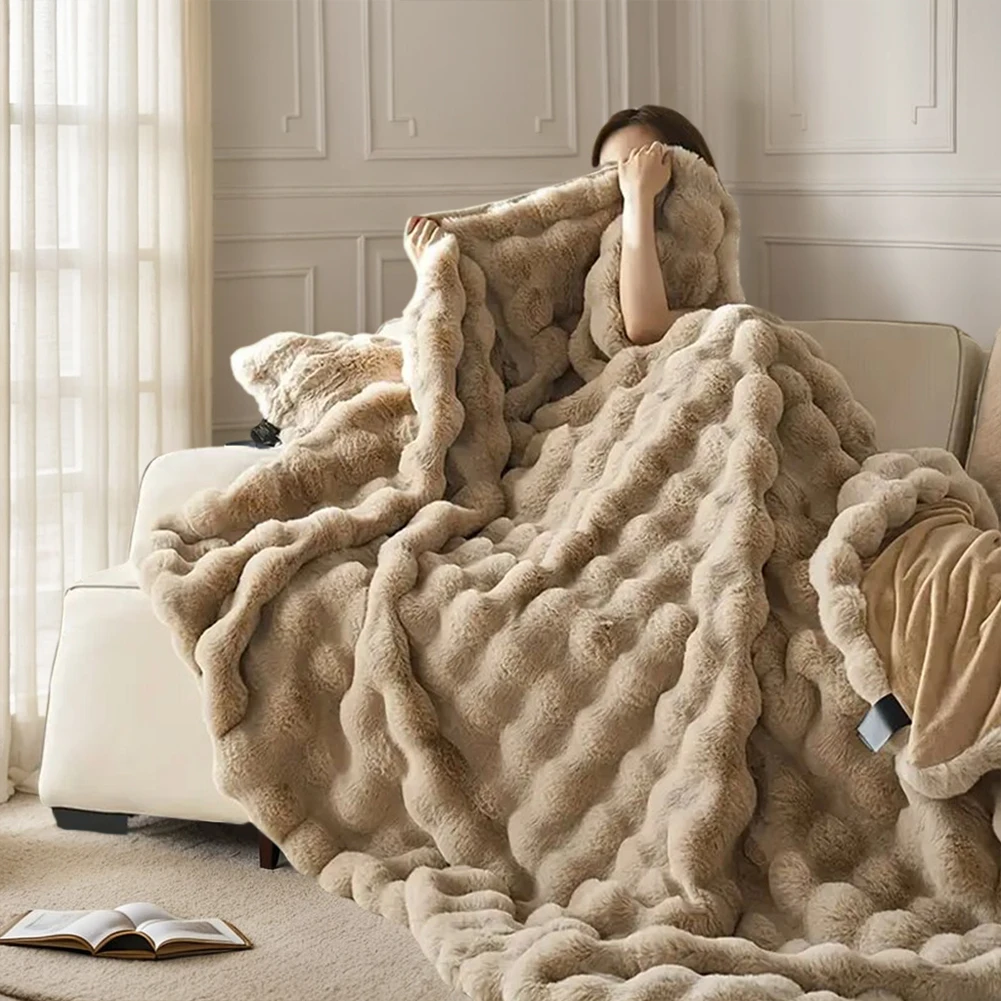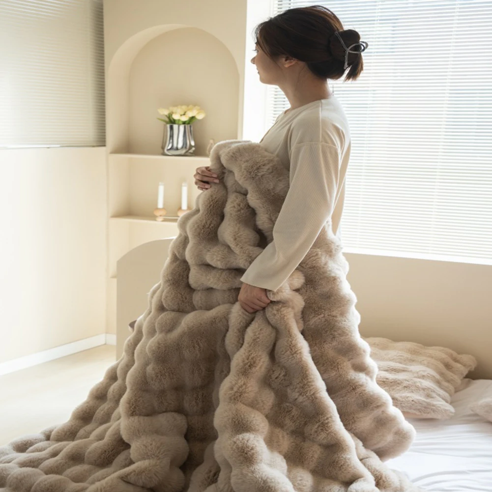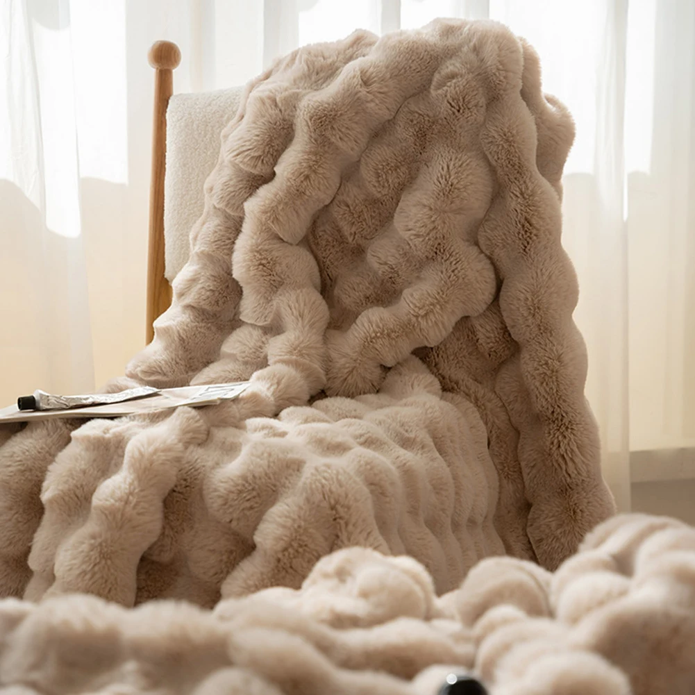 Cozy Toscana Rabbit Fur Blanket Comfortable Office Nap and Sofa Cover Ins Bubble Velvet Blanket for Couch Sofa Office Bed Travel